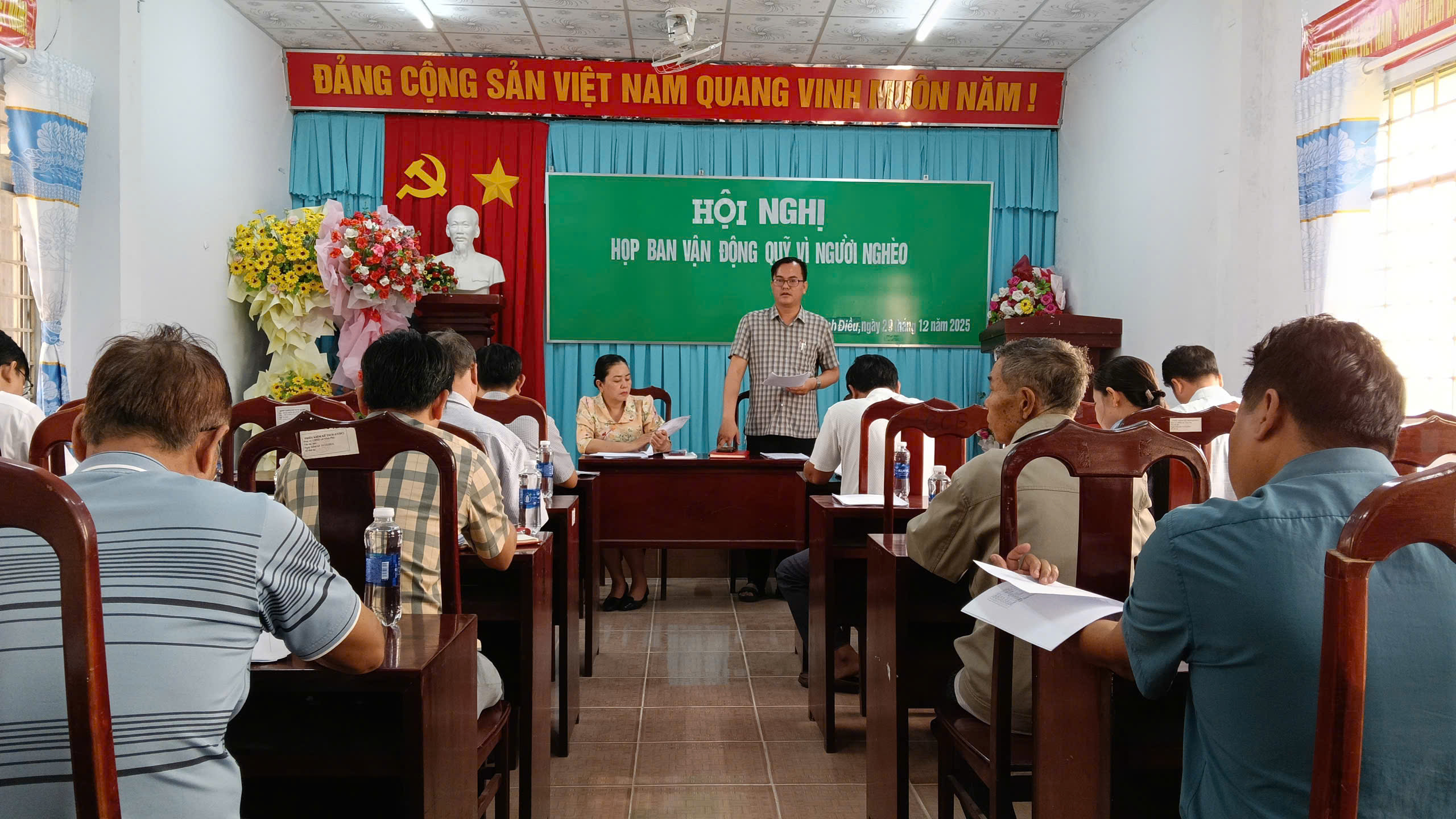 Nhằm thực hiện Công văn số 93/MTTQ-BTT, ngày 23/12/2025 của Ban Thường trực Ủy ban MTTQ Việt Nam tỉnh An Giang về việc khảo sát, lập danh sách và triển khai xây dựng nhà Đại đoàn kết từ nguồn hỗ trợ của Công ty TNHH MTV Xổ số Kiến thiết An Giang, sáng ngày 29/12/2025, Ban vận động Quỹ “Vì người nghèo” xã Vĩnh Điều tổ chức Hội nghị triển khai thực hiện.