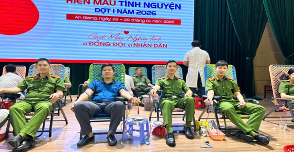 Sáng ngày 29/01/2026, tại phường Rạch Giá, Công an tỉnh An Giang phối hợp Khoa Huyết học và truyền máu, Bệnh viện đa khoa Kiên Giang tổ chức buổi hiến máu tình nguyện với chủ đề “Giọt máu nghĩa tình vì Đồng đội, vì Nhân dân”.