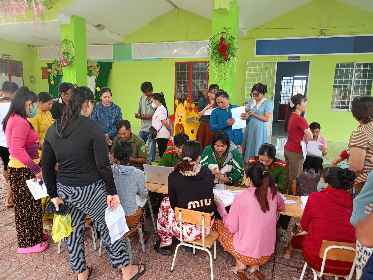 Công an xã Vĩnh Điều vừa phối hợp lãnh đạo các ấp và các trường mẫu giáo trên địa bàn xã tiến hành ra quân tuyên truyền hướng dẫn dịch vụ công cấp thẻ căn cước cho trẻ em dưới 06 tuổi.