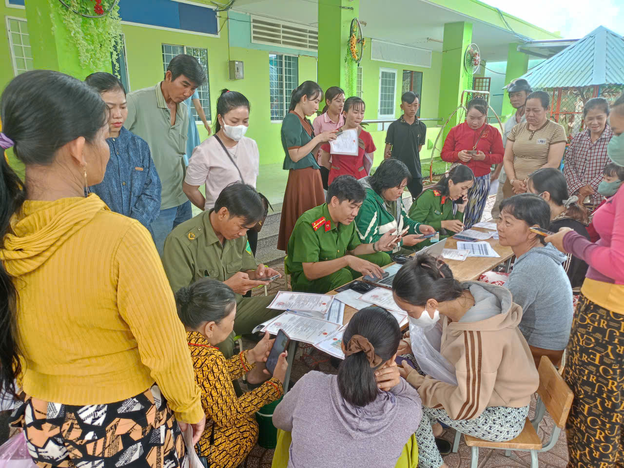 Tại các buổi tuyên truyền, Công an xã và lực lượng an ninh trật tự ở cơ sở đã hướng dẫn tại 04 điểm trường, 02 trụ sở ấp được 338 trường hợp đăng ký thành công.đạt 33,37% chỉ tiêu.
