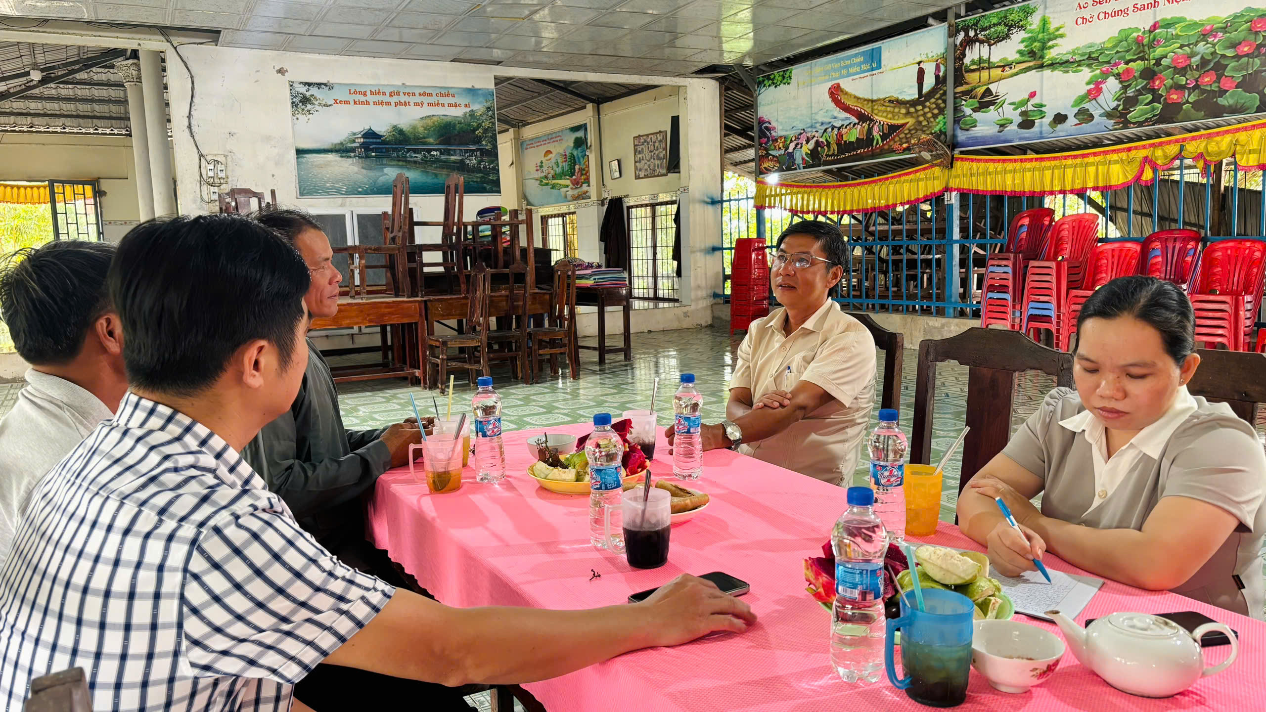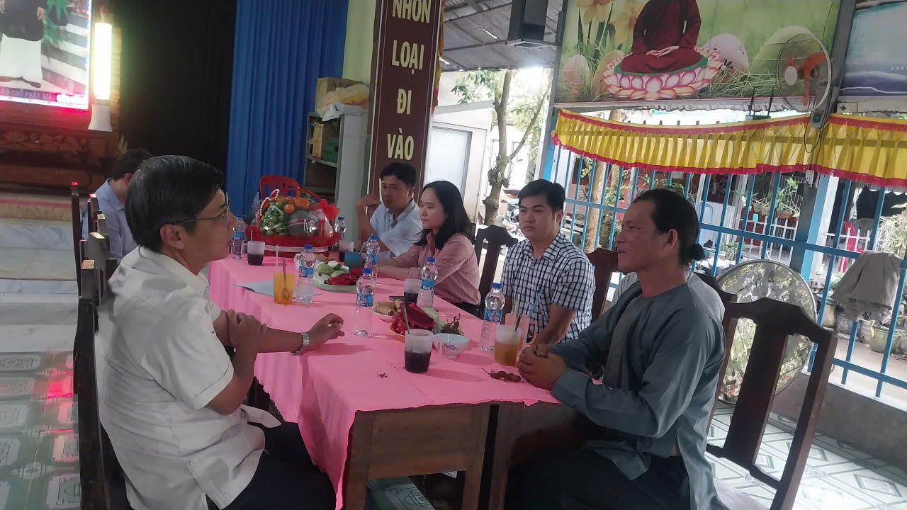 Tại buổi làm việc, đồng chí Huỳnh Thiện Khoa – Phó Bí thư Thường trực Đảng ủy, Chủ tịch HĐND xã Vĩnh Điều đã thông tin nhanh về tình hình sắp xếp đơn vị hành chính, triển khai mô hình chính quyền địa phương 2 cấp, tình hình phát triển kinh tế – xã hội và đảm bảo an ninh trật tự tại địa phương. Đồng thời cũng trao đổi, lắng nghe những tâm tư, nguyện vọng của Ban Trị sự, đồng thời tìm hiểu sâu hơn về tình hình hoạt động tôn giáo sau khi xã thực hiện sáp nhập đơn vị hành chính và chuyển sang mô hình chính quyền địa phương 2 cấp.