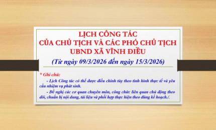 Lịch Công tác của Lãnh đạo UBND xã Vĩnh Điều từ ngày 09/3/2026 đến ngày 15/3/2026