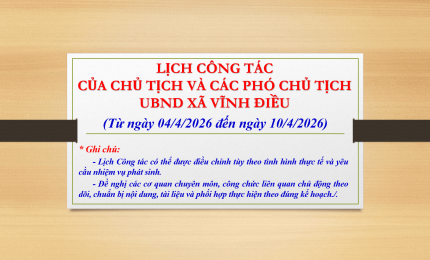 aA Lịch làm việc Lịch làm việc cuối tháng 10/2018 của Thường trực UBND tỉnh 15/10/2018, 14:44 Lịch làm việc cuối tháng 10/2018 của Thường trực UBND tỉnhTập tin đính kèm:374_TB-UBND.signed.pdf Quay về Chia sẻ Z Copy link thành công Tin khác Lịch Công tác của Lãnh đạo UBND xã Vĩnh Điều từ ngày 04/4/2026 đến ngày 10/4/2026 Lịch làm việc 06/04/2026 Lịch Công tác của Lãnh đạo UBND xã Vĩnh Điều từ ngày 09/3/2026 đến ngày 15/3/2026 Lịch làm việc 08/03/2026 Lịch làm việc đầu tháng 10/2018 của Thường trực UBND tỉnh Lịch làm việc 02/10/2018 /lich-lam-viec-cuoi-thang-102018-cua-thuong-truc-ubnd-tinh