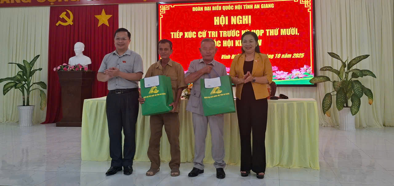 Tại buổi tiếp xúc cử tri, đoàn Đại biểu Quốc hội đơn vị tỉnh An Giang đã tặng 02 phần quà cho các hộ gia đình khó khăn xã Vĩnh Điều, tỉnh An Giang.