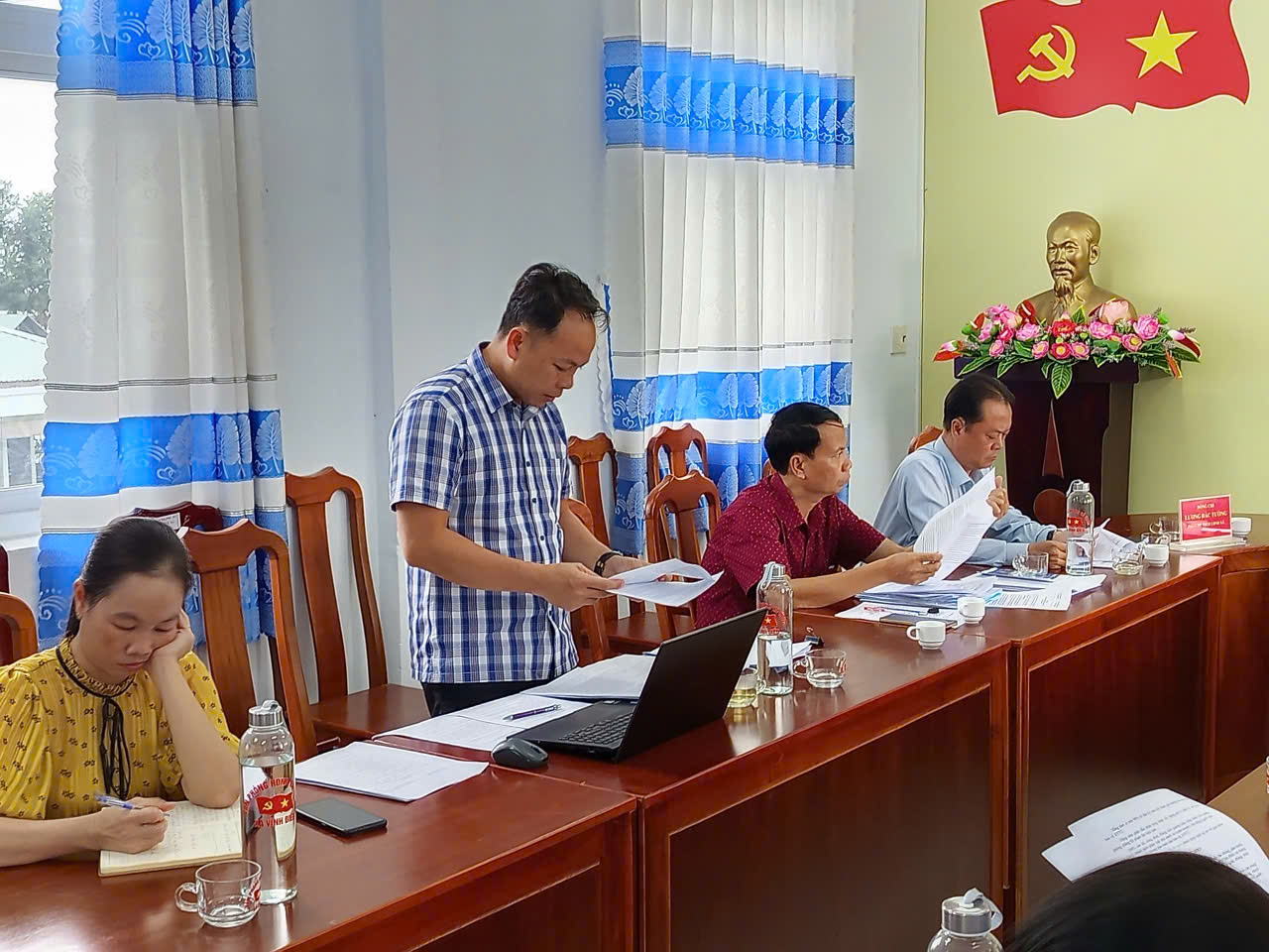 Phòng Văn hóa - Xã hội báo cáo, tham mưu 06 nội dung gồm: (1) Kế hoạch bảo tồn và phát huy các giá trị văn hóa truyền thống, giai đoạn 2026-2030. (2) Kế hoạch xây dựng trường học đạt chuẩn Quốc gia, giai đoạn 2026-2030. (3) Kế hoạch về nâng cao chất lượng khám chữa bệnh cho Nhân dân, giai đoạn 2026-2030. (4) Kế hoạch cải cách hành chính, ứng dụng khoa học công nghệ và chuyển đổi số, giai đoạn 2026-2030. (5) Kế hoạch thực hiện Chiến lược phát triển giáo dục đến năm 2030, tầm nhìn đến năm 2045 trên địa bàn xã Vĩnh Điều. (6) Kế hoạch tuyên truyền, phổ biến các chủ trương, Nghị Quyết của Đảng, chính sách pháp luật của Nhà nước về thực hiện chính bảo hiểm xã hội, bảo hiểm y tế, bảo hiểm thất nghiệp trên địa bàn xã giai đoạn 2026-2030.