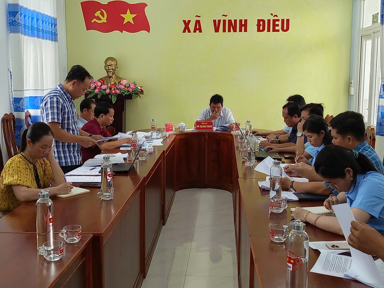 Chiều 17/11, Chủ tịch UBND xã Hà Quang Minh đã chủ trì phiên họp thành viên UBND xã để thông qua các nội dung thuộc thẩm quyền quyết định của UBND xã và báo cáo Đảng ủy cơ quan UBND xã trình Thường trực Đảng ủy xã. Tham dự hội nghị có các đồng chí Phó Chủ tịch UBND xã; Ủy viên UBND xã nhiệm kỳ 2021 - 2026.