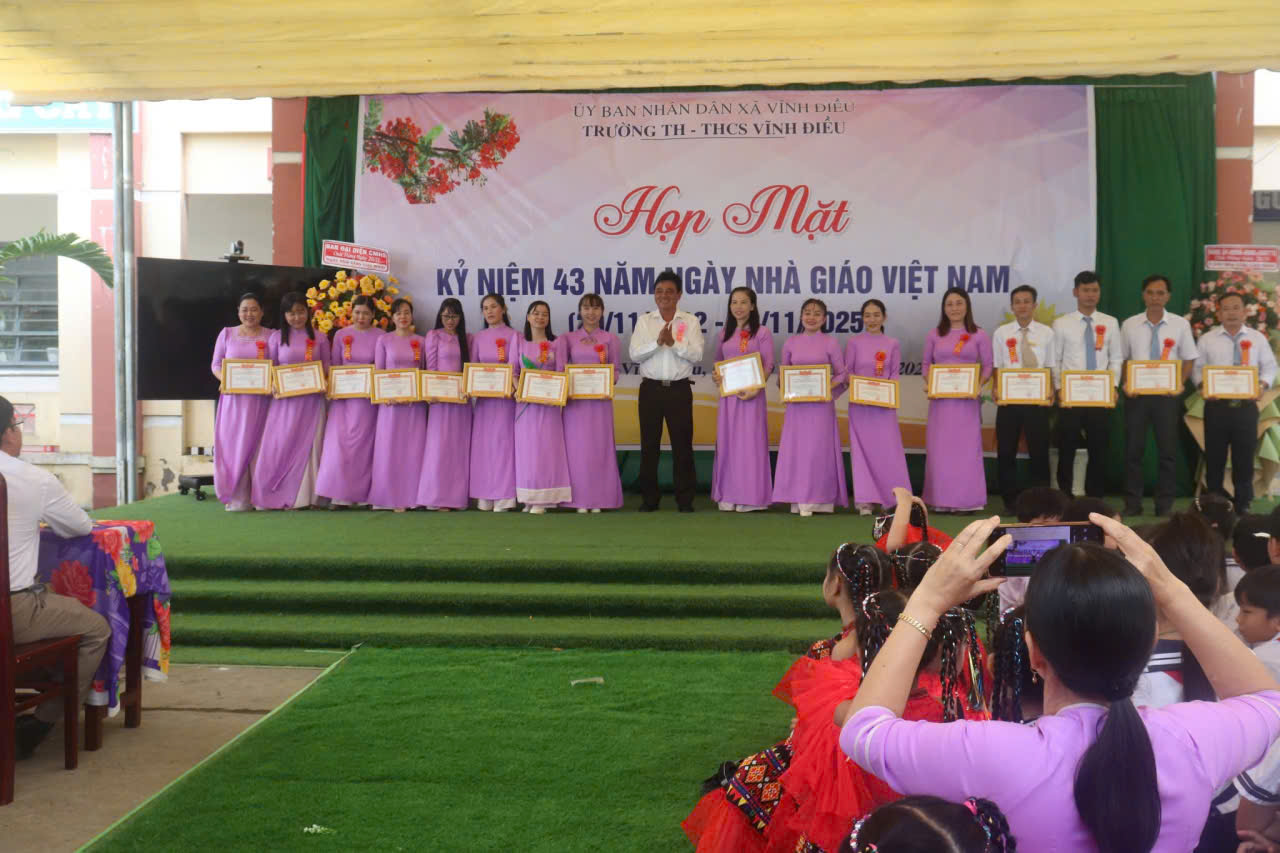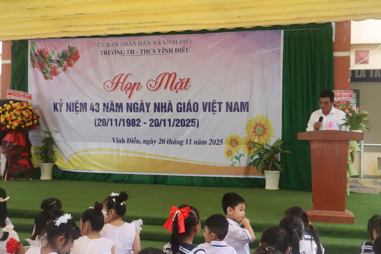 Hòa trong không khí hân hoan của ngành giáo dục cả nước, chiều ngày 20/11/2025, Trường TH-THCS Vĩnh Điều long trọng tổ chức buổi họp mặt kỷ niệm 43 năm Ngày Nhà giáo Việt Nam 20/11 – ngày tri ân và tôn vinh những người đã, đang và sẽ tiếp tục cống hiến cho sự nghiệp “trồng người” cao quý.