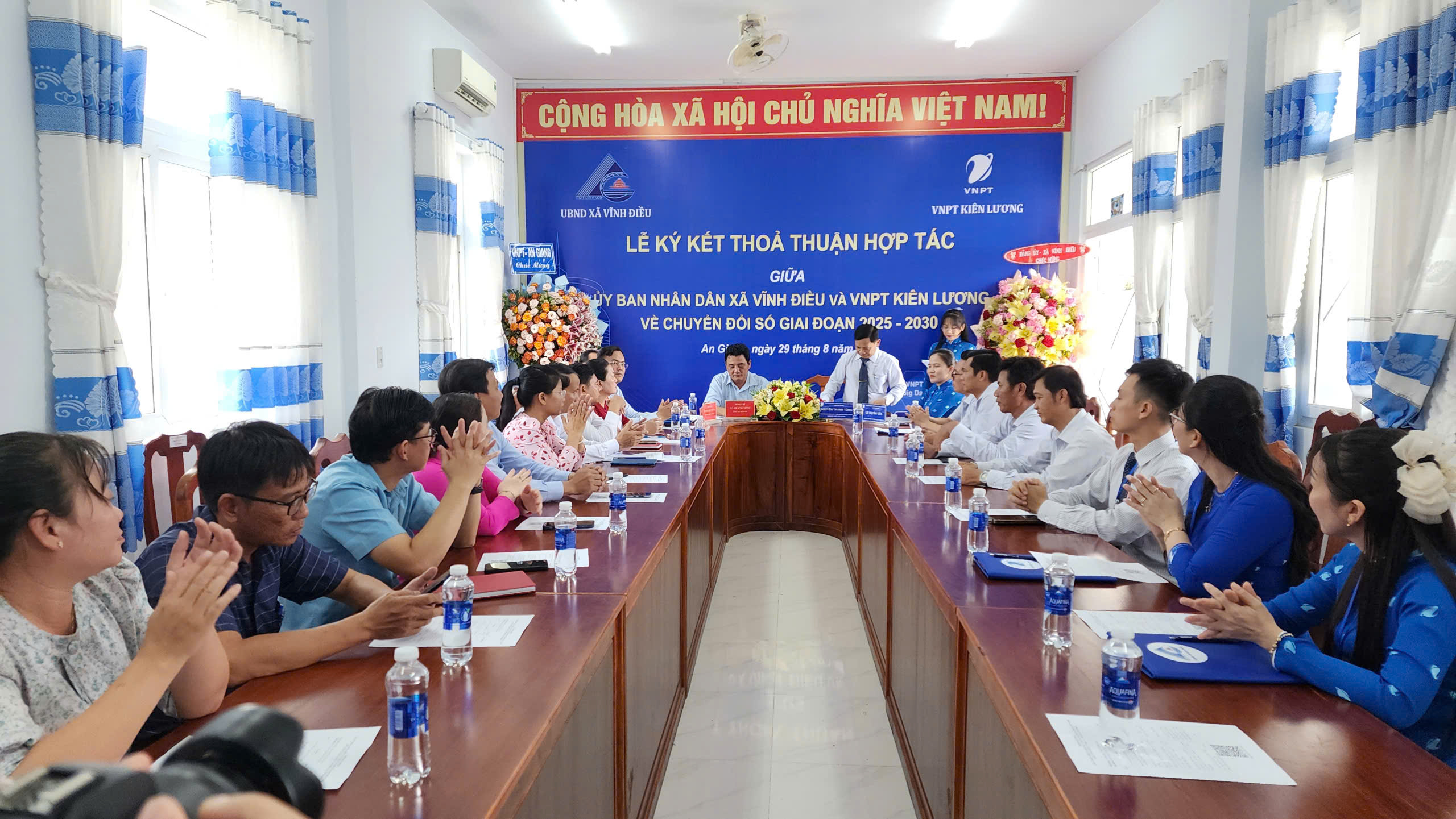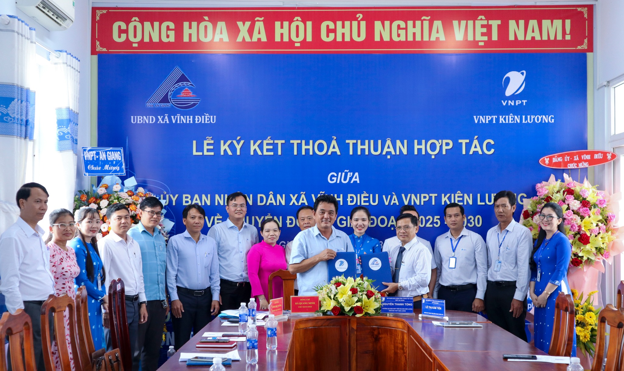 Chiều ngày 29/8/2025, tại Hội trường Ủy ban nhân dân xã Vĩnh Điều, UBND xã Vĩnh Điều và VNPT Kiên Lương đã long trọng tổ chức Lễ ký kết Thỏa thuận hợp tác chuyển đổi số giai đoạn 2025 – 2030.
