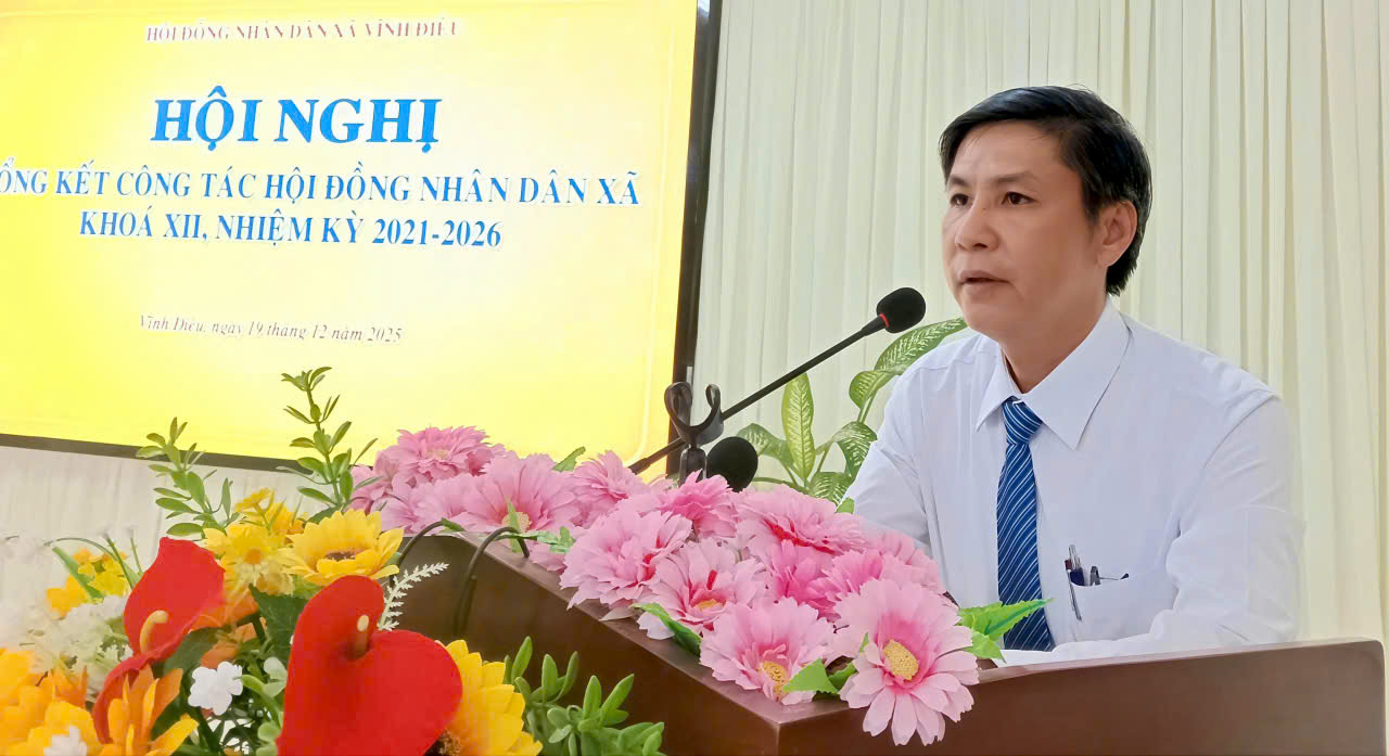 Thực hiện chương trình công tác nhiệm kỳ 2021–2026, ngày 19/12/2025, Hội đồng Nhân dân xã Vĩnh Điều tổ chức Hội nghị tổng kết công tác của Hội đồng Nhân dân xã khóa XII, nhiệm kỳ 2021–2026.