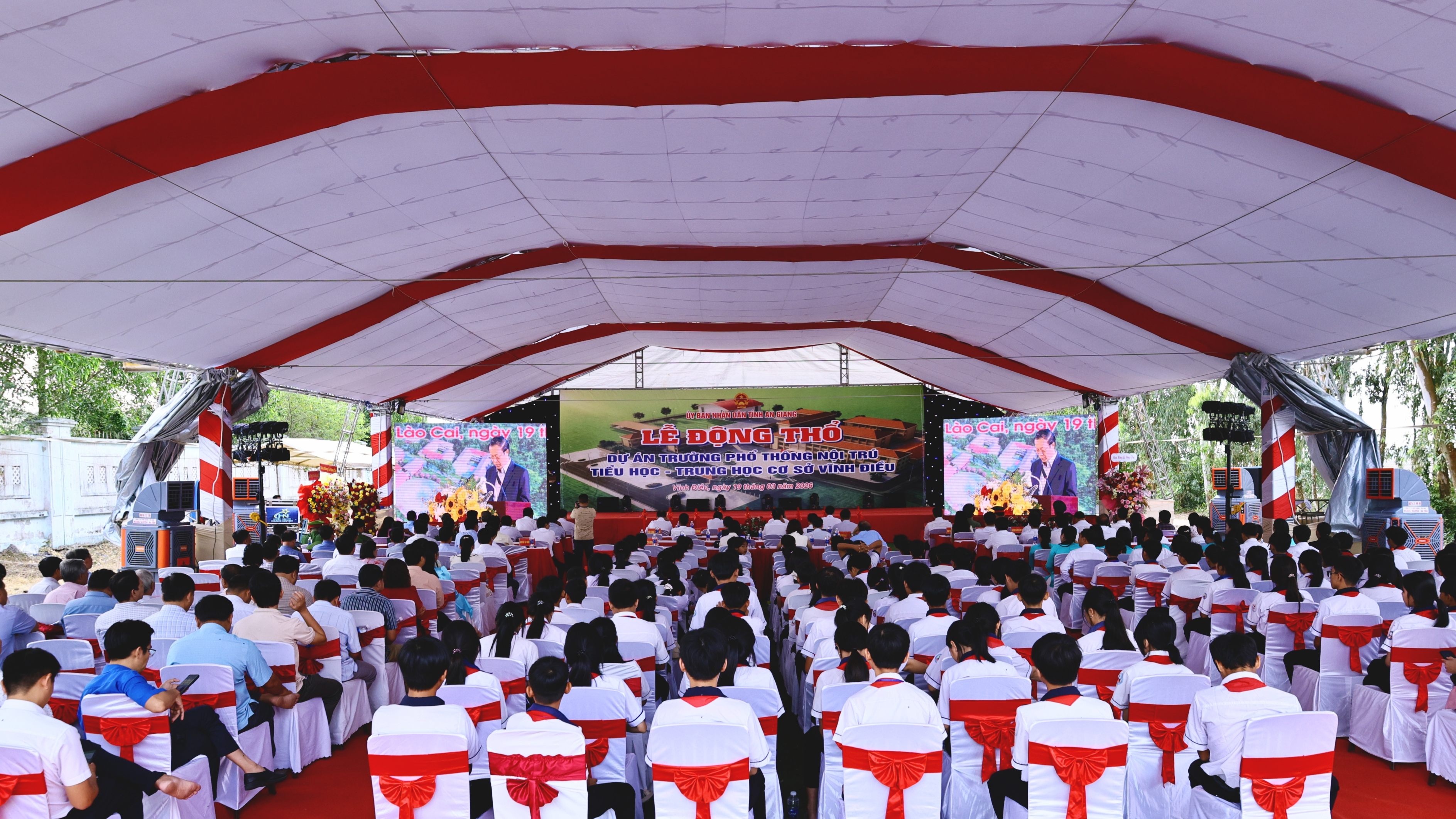 Buổi lễ được tổ chức trang trọng, thống nhất theo chương trình chung của Trung ương, thể hiện quyết tâm chính trị cao trong triển khai các chủ trương lớn về phát triển giáo dục vùng biên giới. Theo kế hoạch, Trường Phổ thông nội trú liên cấp Tiểu học và THCS Vĩnh Điều được xây dựng trên cơ sở hiện trạng Trường THCS Vĩnh Phú, với tổng diện tích 2,672 ha. Quy mô gồm 30 lớp học, đáp ứng nhu cầu học tập cho hơn 1.000 học sinh; trong đó có 16 lớp tiểu học với 480 học sinh và 14 lớp THCS với 520 học sinh. Nhà trường được bố trí 8 phòng học bộ môn và khu nội trú dự kiến phục vụ 300 học sinh.