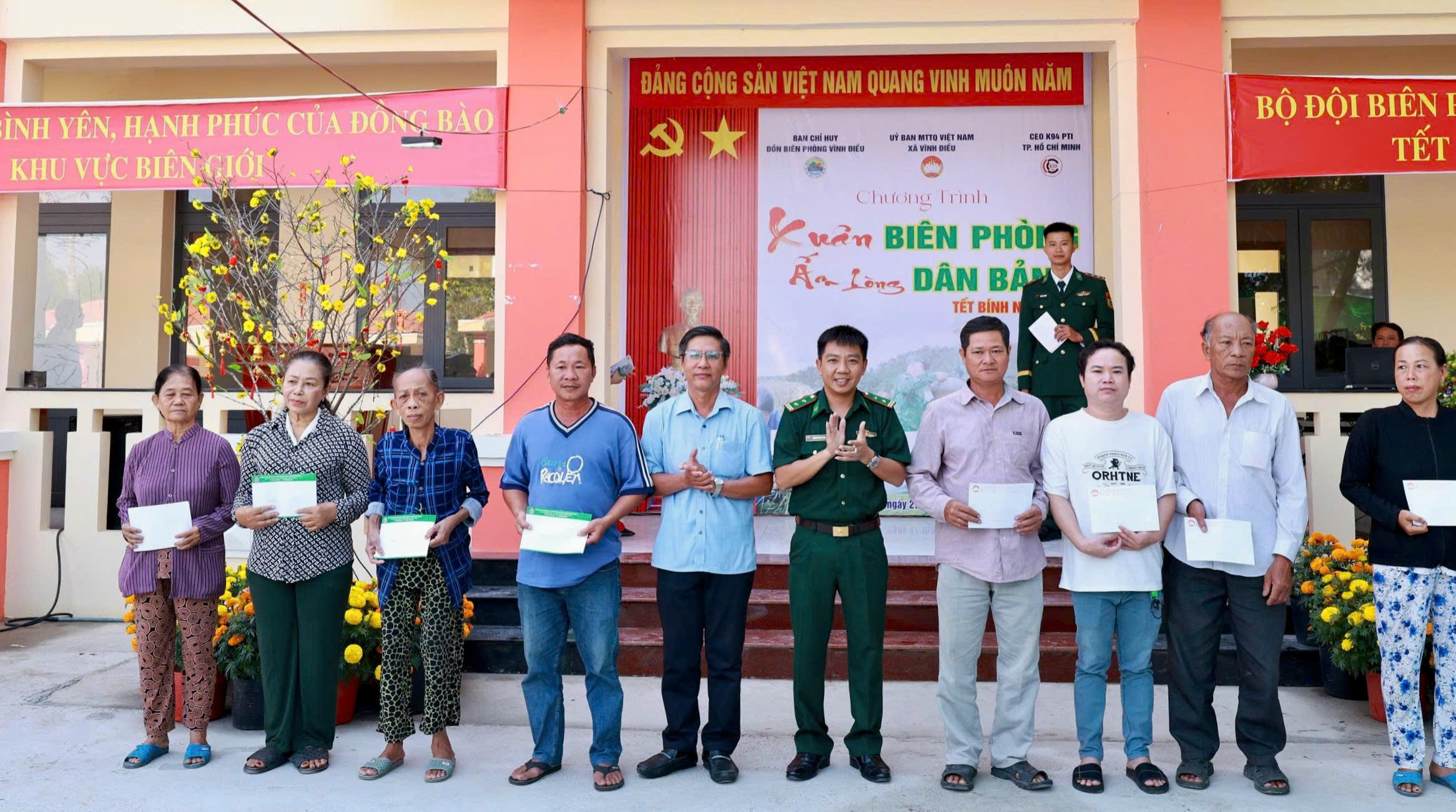Trong không khí vui tươi, phấn khởi mừng Đảng, mừng Xuân Bính Ngọ 2026, sáng ngày 27/01/2026, Ủy ban Mặt trận Tổ quốc Việt Nam xã Vĩnh Điều phối hợp với Đồn Biên phòng Vĩnh Điều và Lớp CEO K94 PTI Thành phố Hồ Chí Minh tổ chức Chương trình “Xuân Biên phòng – Ấm lòng dân bản”. Đây là hoạt động có ý nghĩa chính trị – xã hội sâu sắc, thể hiện sự quan tâm của Đảng, Nhà nước, lực lượng vũ trang và các tổ chức, cá nhân đối với nhân dân vùng biên giới.