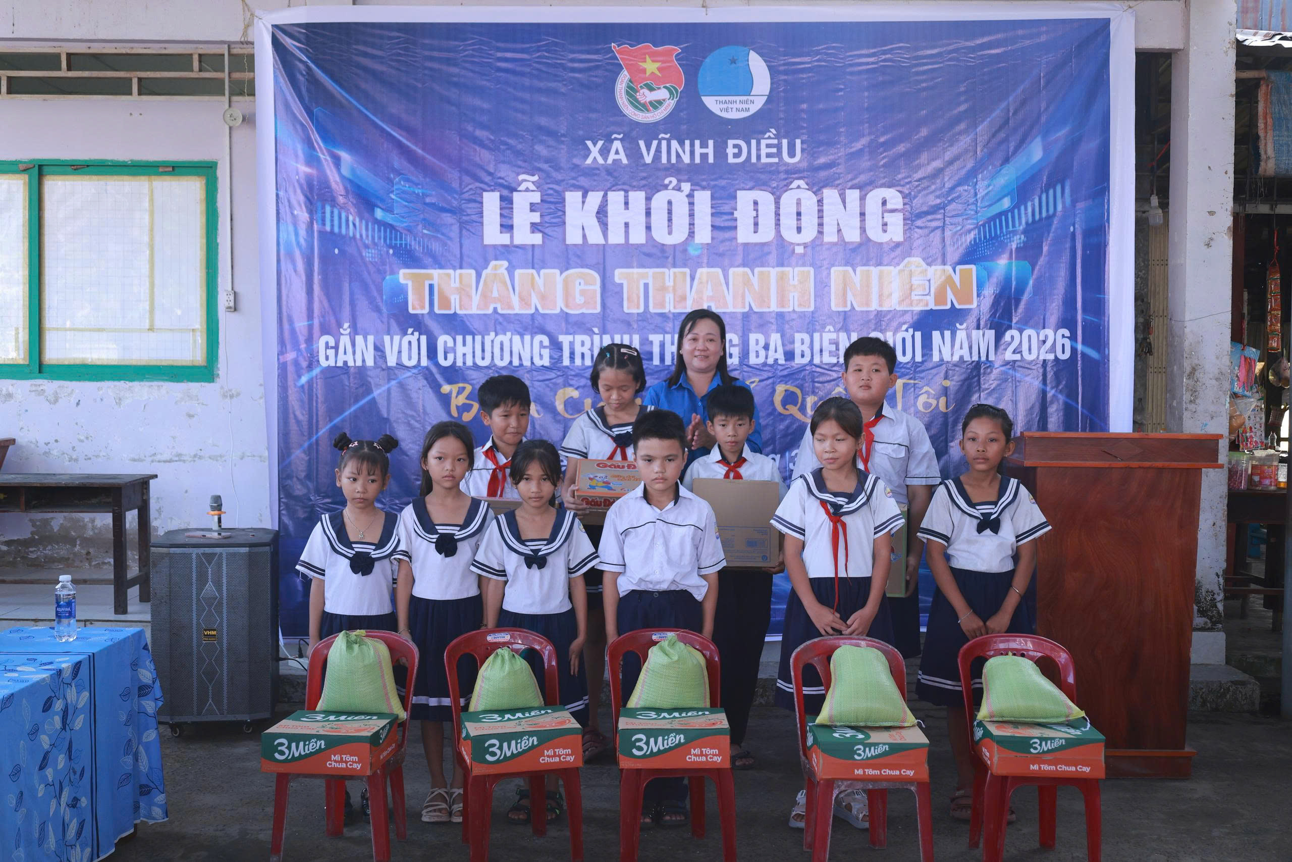 Lễ ra quân Tháng Thanh niên năm 2026 xã Vĩnh Điều diễn ra trong không khí phấn khởi, thiết thực, thể hiện rõ vai trò xung kích, tình nguyện của tuổi trẻ trong tham gia các hoạt động an sinh xã hội, bảo vệ môi trường và xây dựng địa phương.