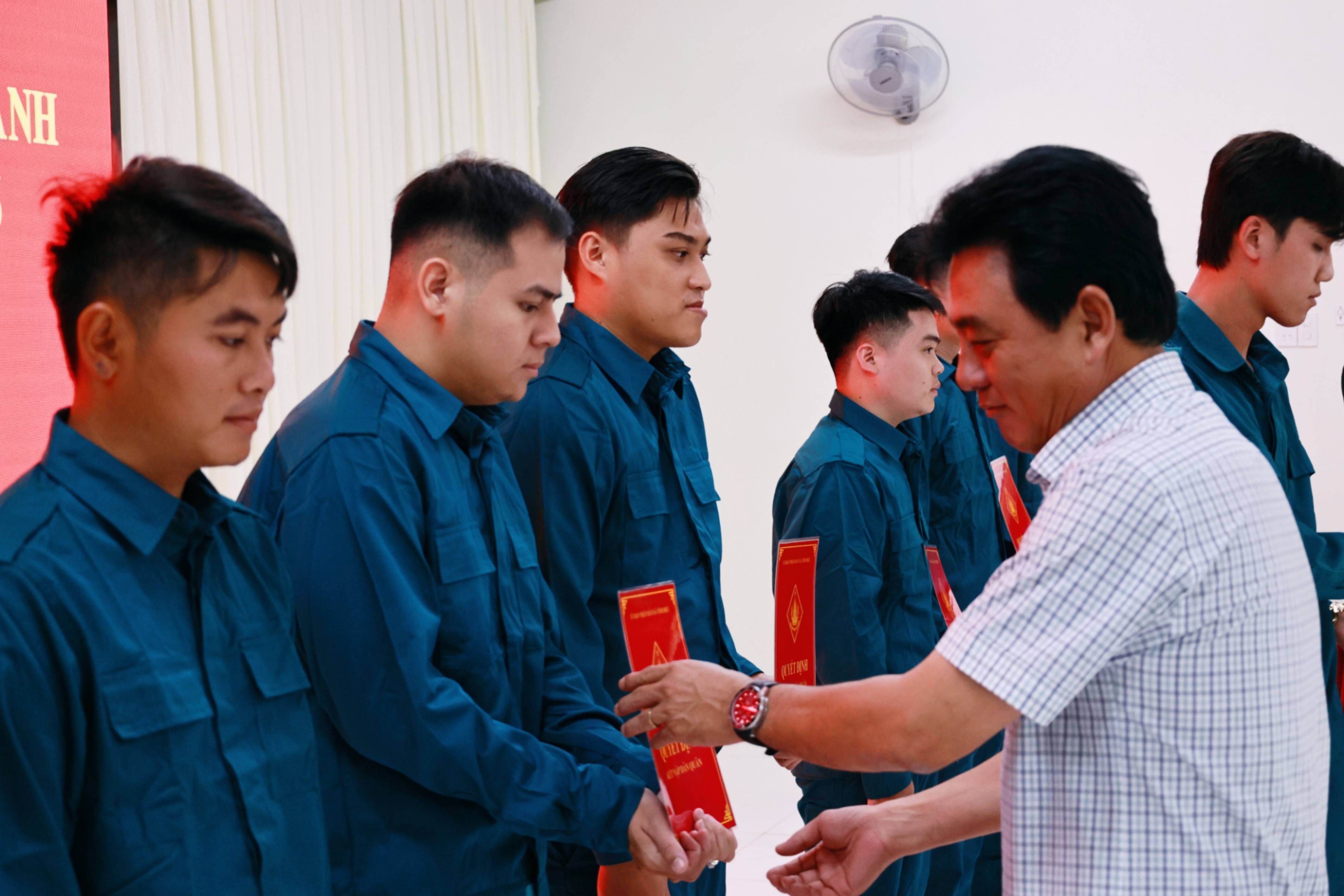 trao các quyết định cho Dân quân tham gia tại buổi lễ