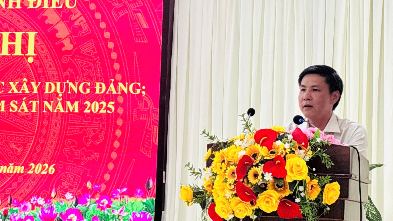 Chiều ngày 14/01, Đảng ủy xã Vĩnh Điều tổ chức hội nghị tổng kết công tác tổ chức xây dựng Đảng; công tác kiểm tra, giám sát năm 2025 và triển khai nhiệm vụ năm 2026. Dự và chỉ đạo hội nghị do đồng chí Huỳnh Thiện Khoa, Phó Bí thư Thường trực Đảng ủy, Chủ tịch HĐND xã; đồng chí Trần Thanh Triều, UVBTV, Trưởng Ban Xây dựng Đảng; đồng chí Nguyễn Thanh Hải, UVBTV, Chủ nhiệm Ủy ban Kiểm tra Đảng ủy chủ trì. Tham dự hội nghị còn có các đồng chí Ủy viên Ban Thường vụ, Ban Chấp hành Đảng bộ xã; lãnh đạo các cơ quan tham mưu, giúp việc Đảng uỷ; bí thư các đảng ủy, chi bộ trực thuộc.