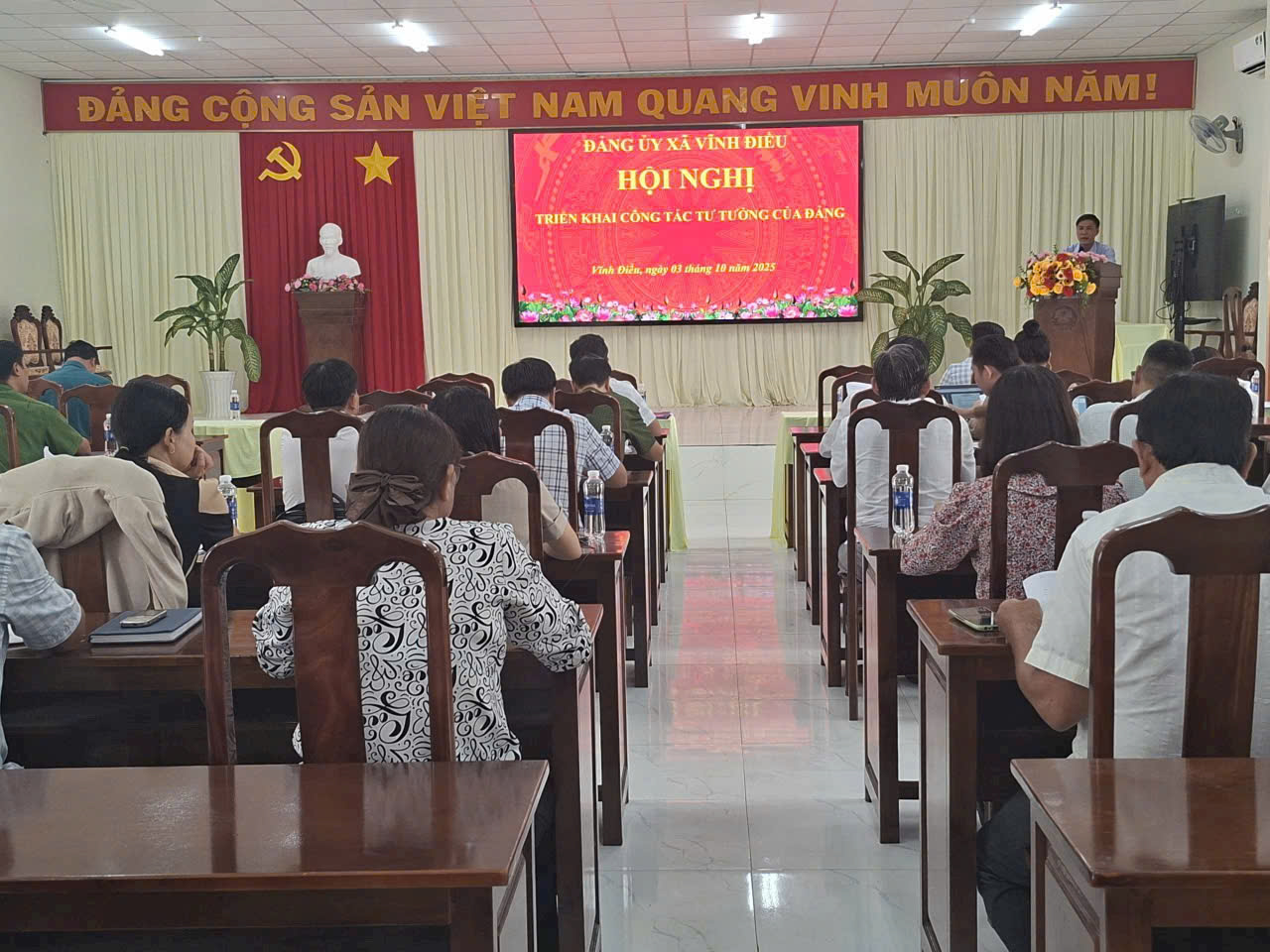 Chiều ngày 03/10/2025, Đảng ủy xã Vĩnh Điều tổ chức Hội nghị Triển khai công tác tư tưởng của Đảng