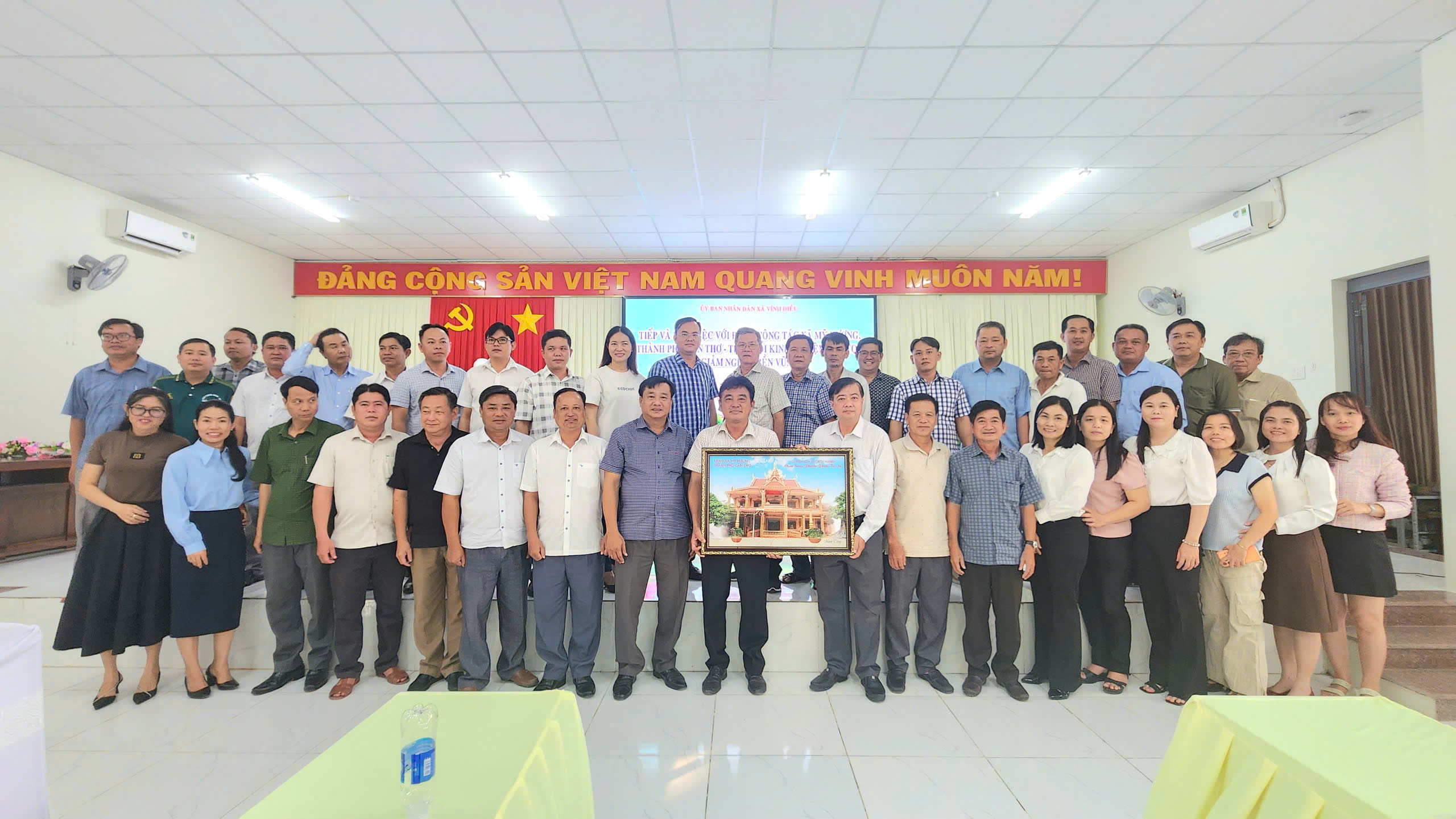 Chiều ngày 13/12/2025, tại Hội trường Đảng ủy xã Vĩnh Điều, Ủy ban nhân dân xã Vĩnh Điều đã tổ chức tiếp và làm việc với Đoàn công tác xã Mỹ Hương, thành phố Cần Thơ đến học tập, trao đổi kinh nghiệm trong triển khai thực hiện Chương trình mục tiêu quốc gia giảm nghèo bền vững.