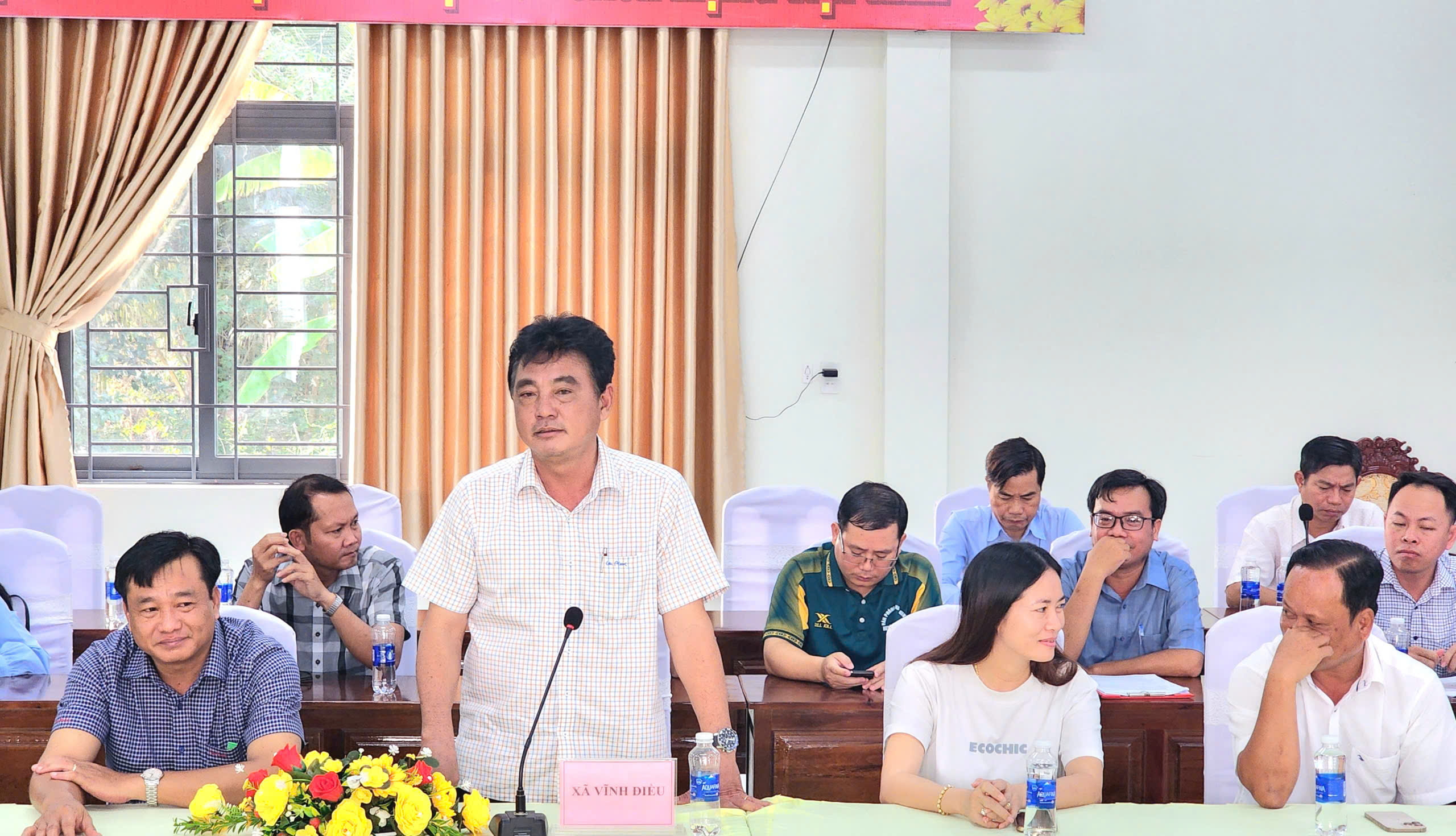 Tiếp và làm việc với đoàn có đồng chí Hà Quang Minh – Phó Bí thư Đảng ủy, Chủ tịch UBND xã Vĩnh Điều, cùng các đồng chí trong Thường trực Đảng ủy, HĐND, UBND, Ủy ban MTTQ Việt Nam xã và lãnh đạo các cơ quan, đơn vị trên địa bàn xã.