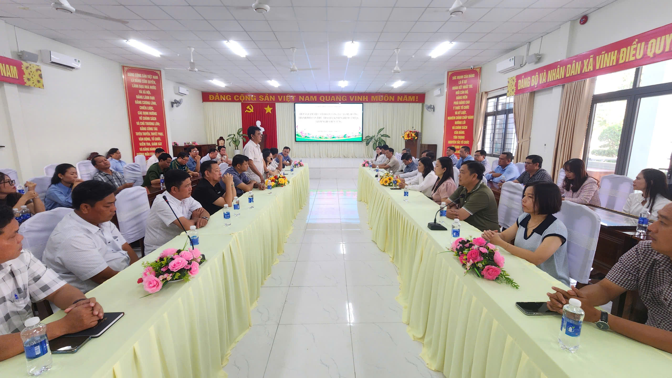 trao đổi, chia sẻ kinh nghiệm tại buổi làm việc.