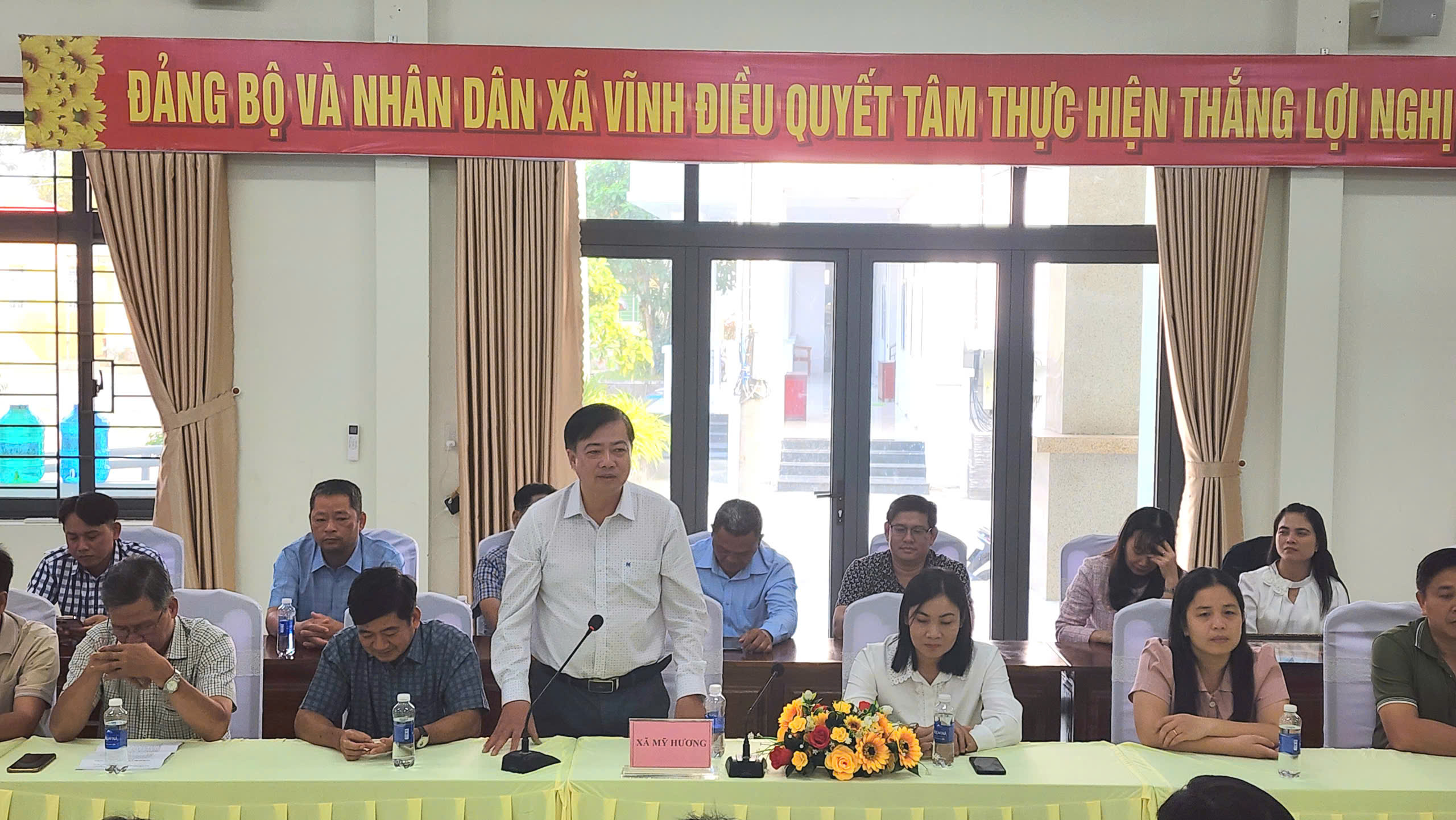Về phía Đoàn công tác xã Mỹ Hương do đồng chí Ký Minh Thi – Chủ tịch UBND xã Mỹ Hương làm Trưởng đoàn, cùng các đồng chí lãnh đạo Đảng ủy, HĐND, UBND, Mặt trận Tổ quốc và đại diện các ban, ngành của xã tham dự.