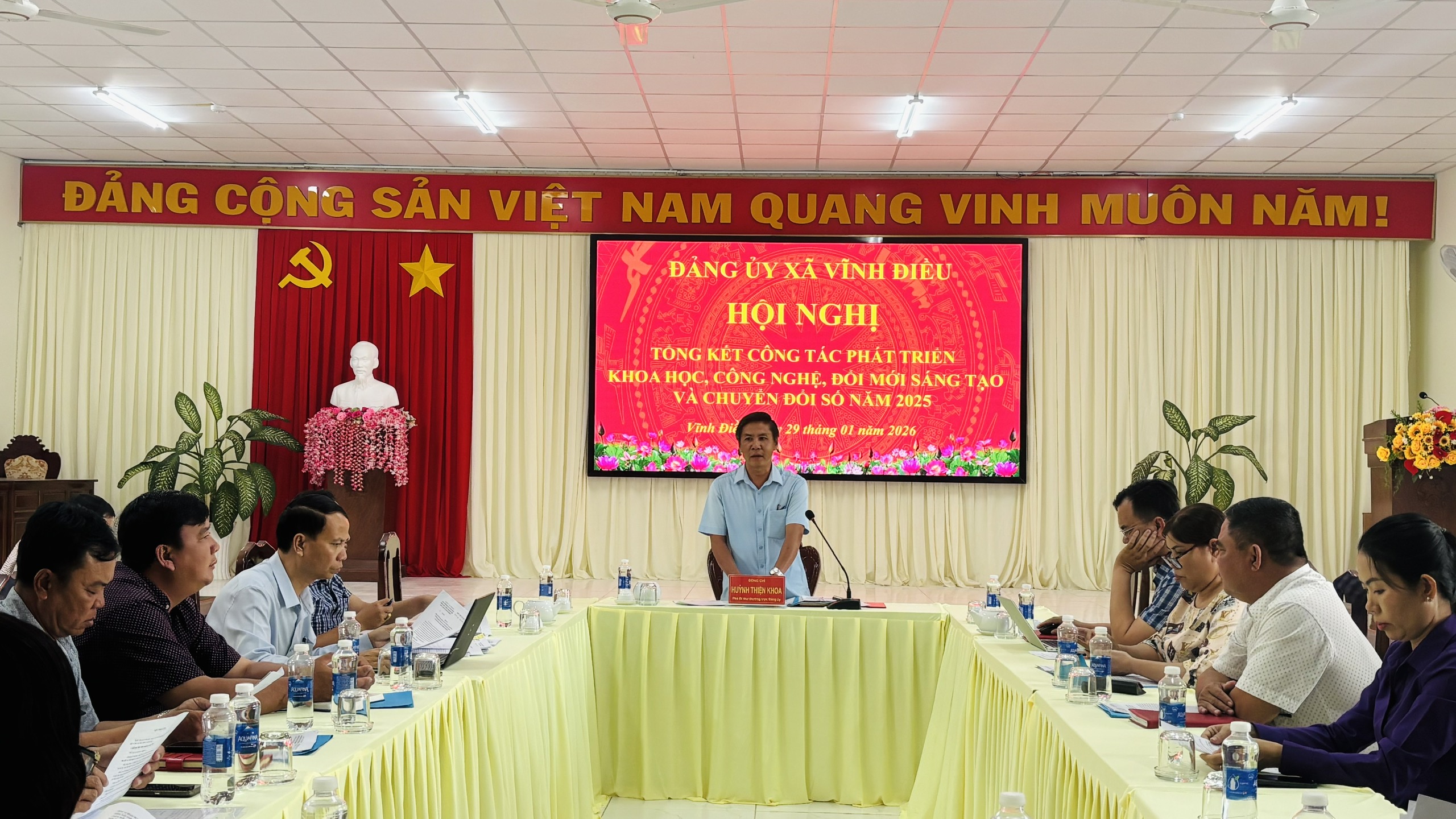 Chiều ngày 29/01, Ban Chỉ đạo thực hiện Nghị quyết 57 Đảng ủy xã tổ chức hội nghị tổng kết công tác năm 2025, triển khai nhiệm vụ trọng tâm năm 2026. Đồng chí Huỳnh Thiện Khoa, Phó Bí thư Thường trực Đảng ủy, Chủ tịch Hội đồng nhân dân xã chủ trì hội nghị; tham dự còn có thành viên Ban Chỉ đạo xã, Tổ giúp việc của Ban Chỉ đạo phát triển khoa học, công nghệ, đổi mới sáng tạo và chuyển đổi số.